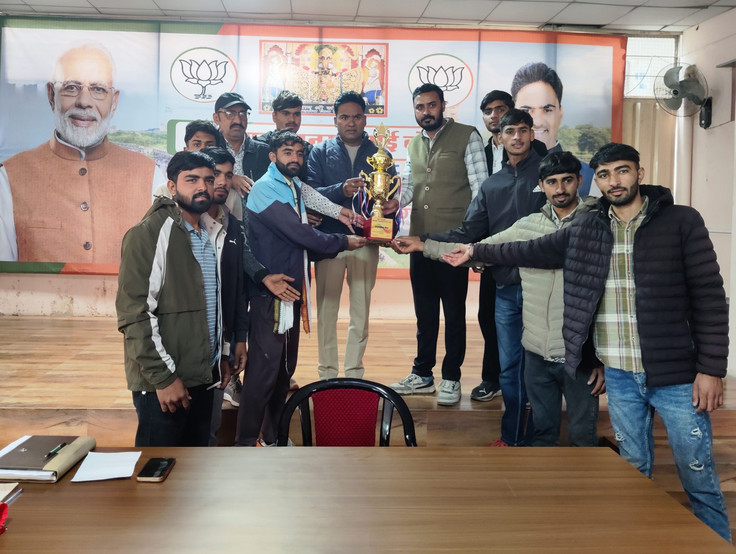 हैंडबॉल प्रतियोगिता में विजेता घोसुण्डा कॉलेज टीम का विधायक कार्यालय में सम्मान