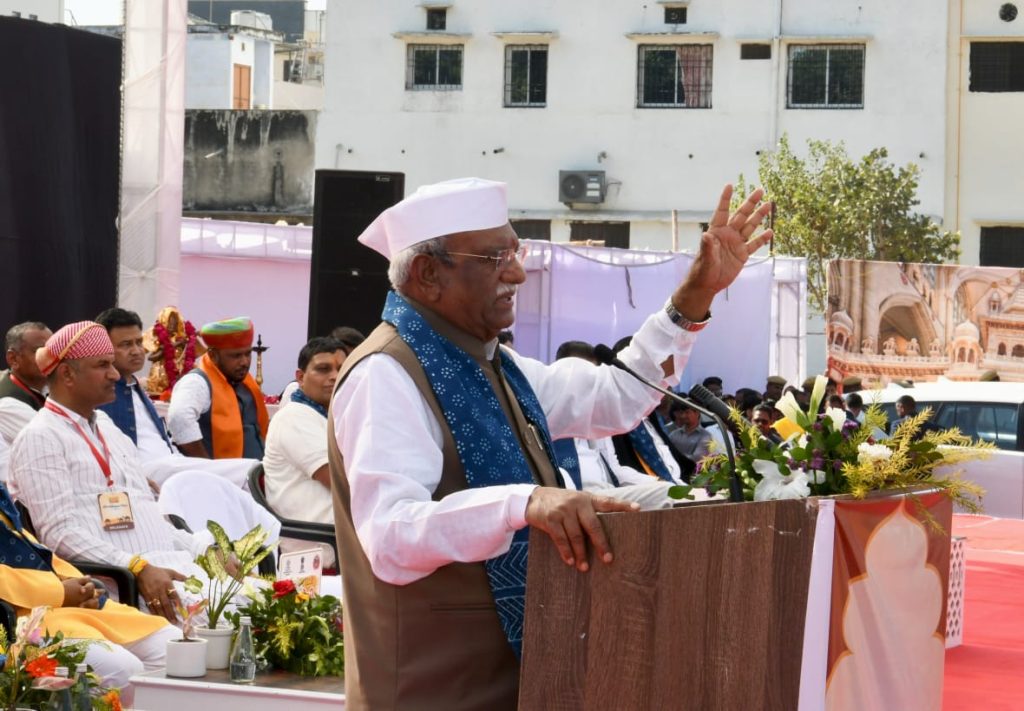 चित्तौड़गढ़। मेवाड़ की शौर्यभूमि चित्तौड़गढ़ में मंगलवार को राष्ट्रीय स्वदेशी महोत्सव का भव्य शुभारंभ स्वदेशी चेतना, सांस्कृतिक गौरव और आत्मनिर्भर भारत के संदेश के साथ हुआ। सुभाष चौक से इंदिरा गांधी स्टेडियम तक निकली रंग-बिरंगी भव्य शोभायात्रा ने पूरे शहर को स्वदेशी के रंग में रंग दिया, वहीं उद्घाटन समारोह को मुख्य अतिथि पद से संबोधित करते हुए राज्यपाल श्री हरिभाऊ बागडे ने कहा कि – जब भारतीयों का स्वाभिमान बढ़ेगा, तब स्वदेशी भावना स्वतः सशक्त होगी। स्वदेशी से ही आत्मनिर्भर भारत का मार्ग प्रशस्त होगा। उन्होंने कहा कि वीरों, भामाशाहों और स्वाभिमान की भूमि मेवाड़ से स्वदेशी महोत्सव के माध्यम से आत्मनिर्भर भारत का संदेश जाना अत्यंत प्रेरक पहल है। राज्यपाल ने स्वदेशी उत्पादों को अपनाने का आह्वान करते हुए उपस्थित जनसमूह को स्वदेशी का संकल्प भी दिलाया।